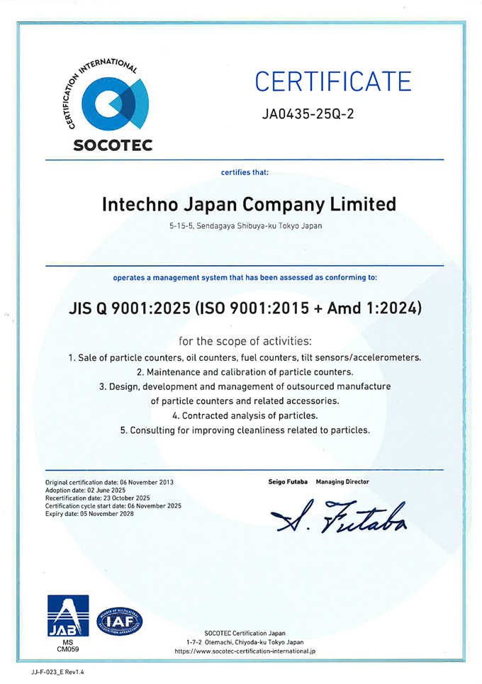 Intechno Japan operates under our Quality Management System certified by ISO 9001 standard. We are committed to provide the best quality and services for a supreme customer experiences.